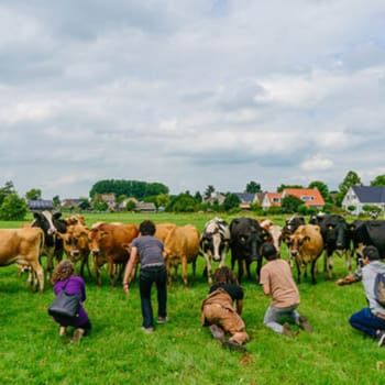 Bij boer Pieter mochten we door het weiland struinen om de koeien te knuffelen die voor die lekkere room voor onze ijsjes zorgen. Boer Pieter heeft zelfs de bijzondere Jersey-koeien in zijn weiland staan; deze koeien staan erom bekend dat ze wat minder melk geven dan onze gewone Hollandse koeien, maar wél extra romige melk. Dat maakt onze ijsjes ook zo lekker zacht en romig. Onze Lucas werd zó wild van onze koeien, dat hij spontaan in het weiland ging liggen, midden tussen de koeien. En onze Rhea & Mirte kunnen het onderdeel ’tractor besturen’ weer van hun bucketlist af strepen.