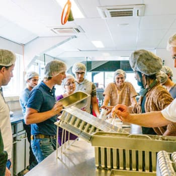 Daarnaast mochten we zelf biologisch ijs maken in de ijsmakerij van onze ijshelden Henk & Jos. Superleerzaam! Zo leerden we dat er hele aardbeien worden gebruikt voor onze lekkere aardbeiensorbetijsjes, die worden verhit tot ze helemaal zacht zijn. En we ontdekten hoe lekker versgemaakt amandelijs is. We overwegen nu om die ook mee te nemen in onze ijsfietsen. Wat denk jij; heb je zin in een vers, biologisch amandelijsje?