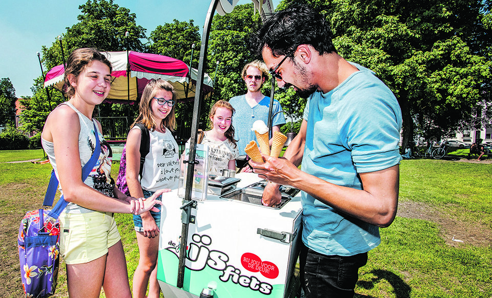 “Achmed vluchtte op 10-jarige leeftijd uit Afghanistan naar Nederland, kocht op zijn 25e een fiets en timmerde er eigenhandig een ijsbak op. De eerste week schepte hij net zo lang ijs tot zijn duim verkrampte en omklapte.” Inmiddels is Achmed 30 jaar, woont hij in Amsterdam en heeft hij een team van 120 fietsers en collega’s om zich heen verzameld. Hij is er duidelijk over: hij heeft het mooiste werk dat er bestaat. Het motto van onze ijsfiets-familie is dan ook: Do What You Love.